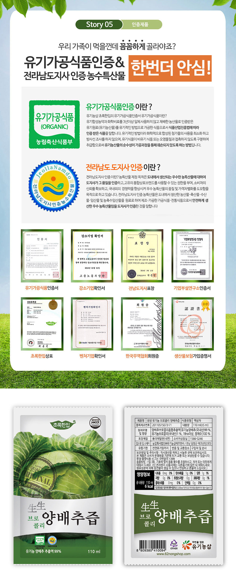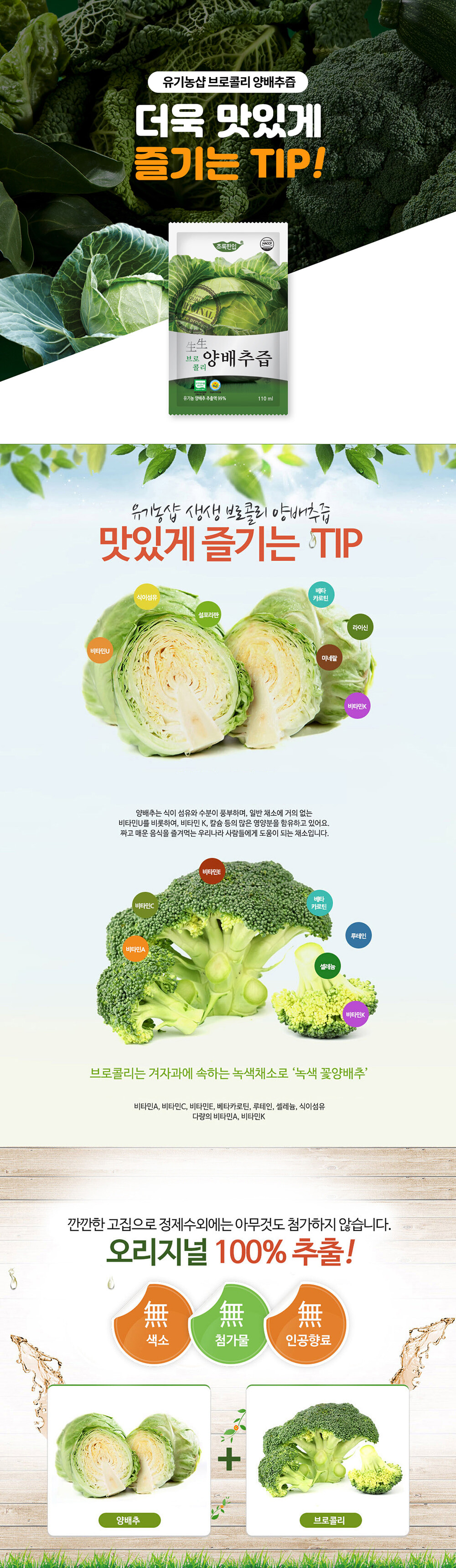 [초록한입] 유기농 브로콜리 양배추즙 110ml 60포 (실속형)