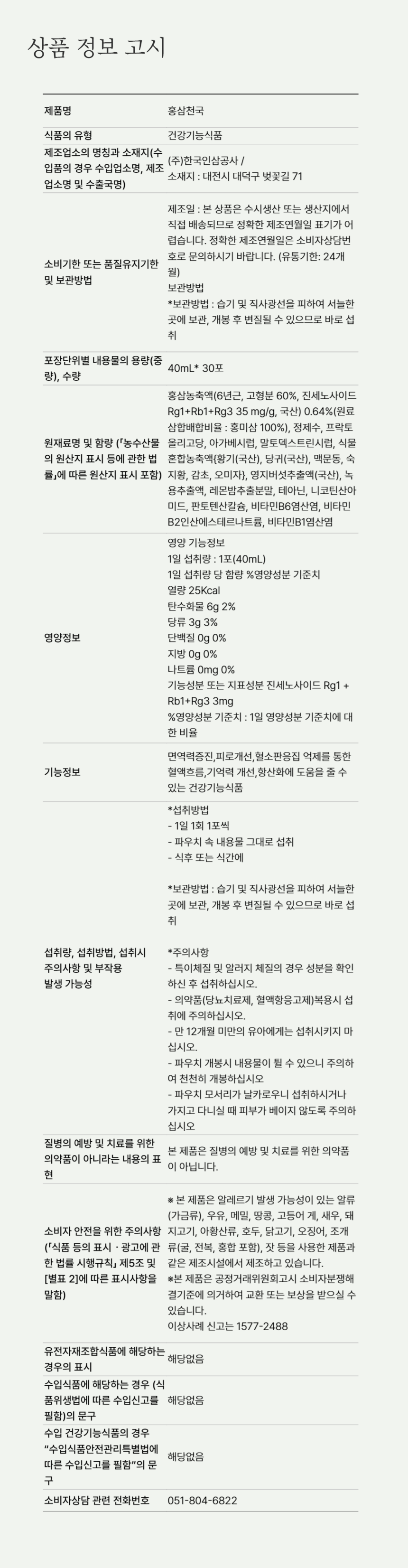 정관장 홍삼천국 40ml × 30포
