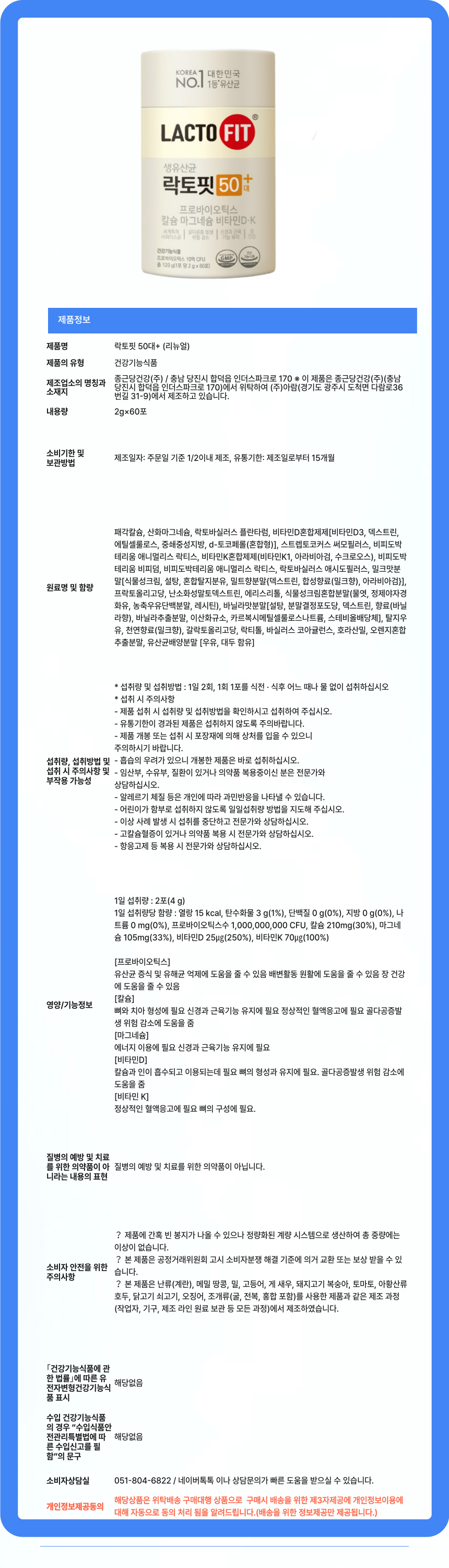 종근당 유산균 락토핏 50대+ 2통(2개월분)
