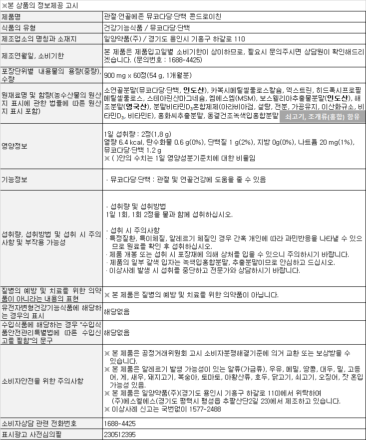 관절연골엔존 뮤코다당 단백 콘드로이친 (900mg x 60정)3통