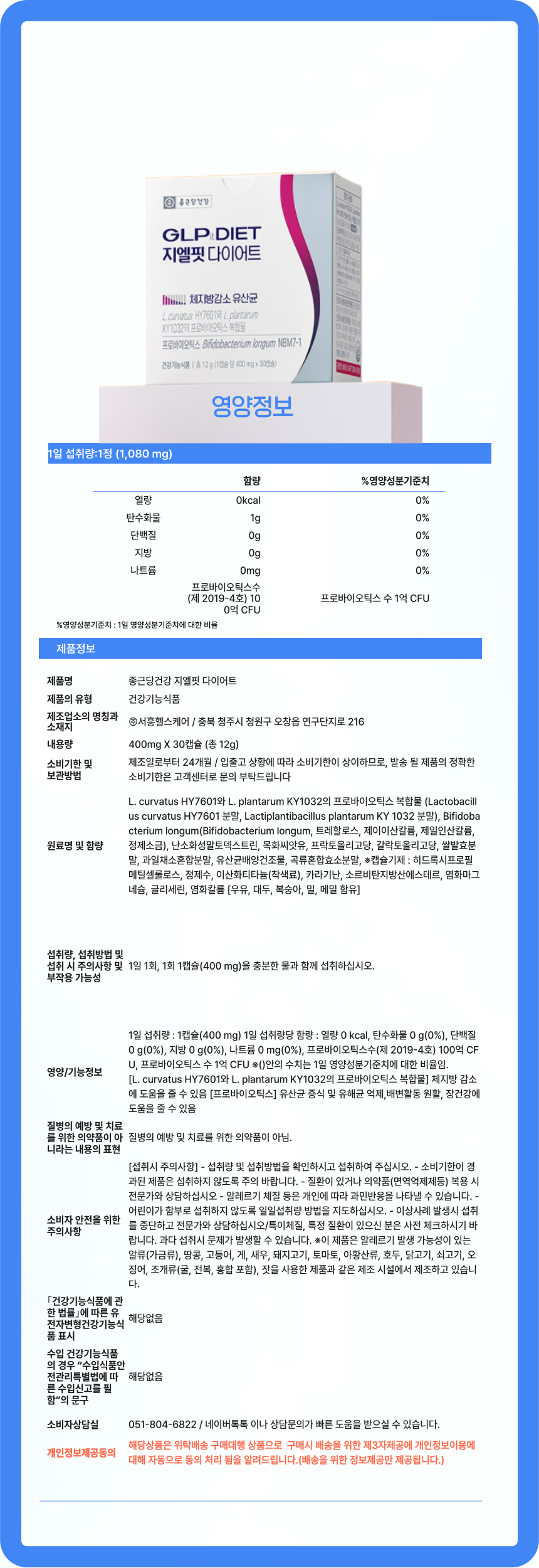 종근당건강 지엘핏 다이어트 체지방감소 유산균 30캡슐