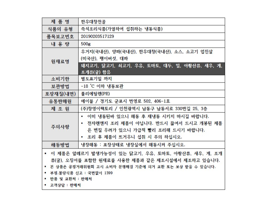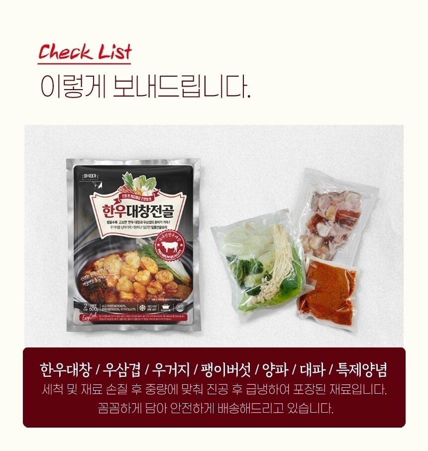 한우대창 우삼겹 얼큰한 대창전골 밀키트2인분