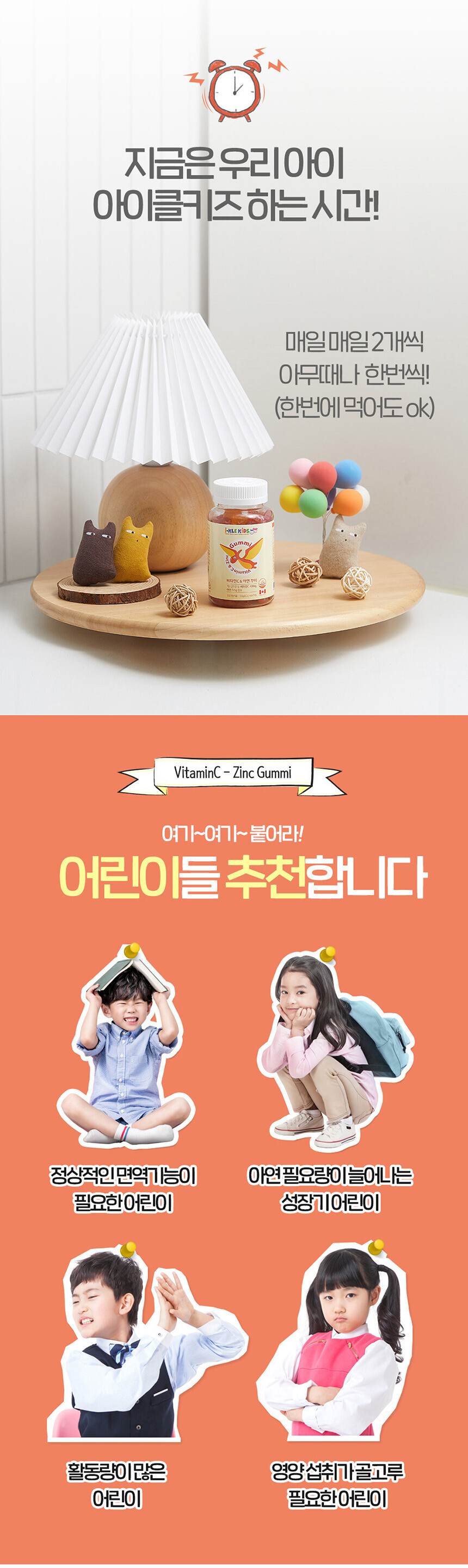 아이의 쑥쑥 성장 면역력까지 꽉 잡은 아이클키즈로 키워주세요!면역력 쑥쑥! 아연,비타민C 함유로 우리 아이 건강 지킴이!