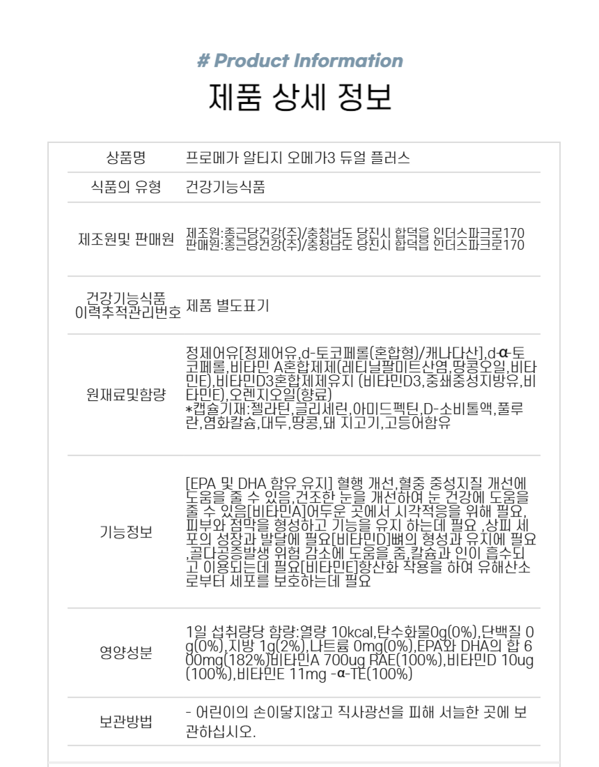 종근당 프로메가 알티지 오메가3 듀얼 플러스 60캡슐 3통