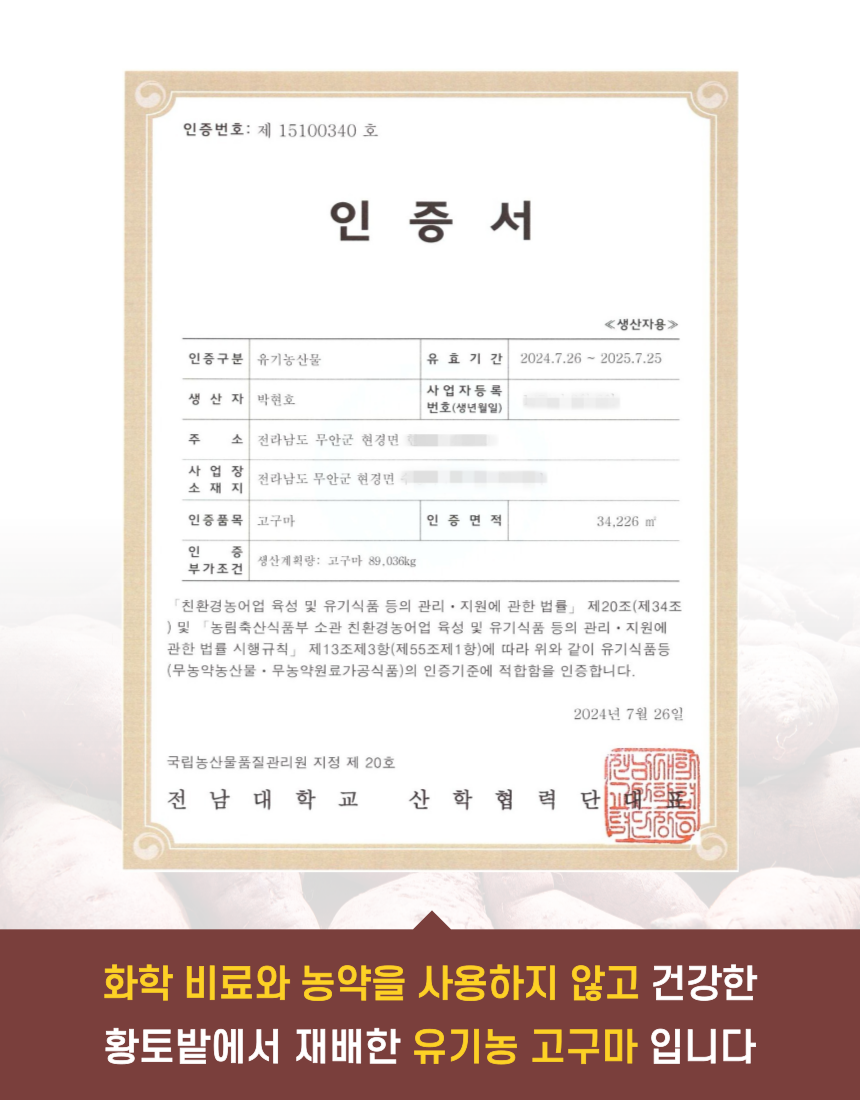 유기농 꿀 고구마 3kg 5kg 황토밭 재배 생산자 직접 발송