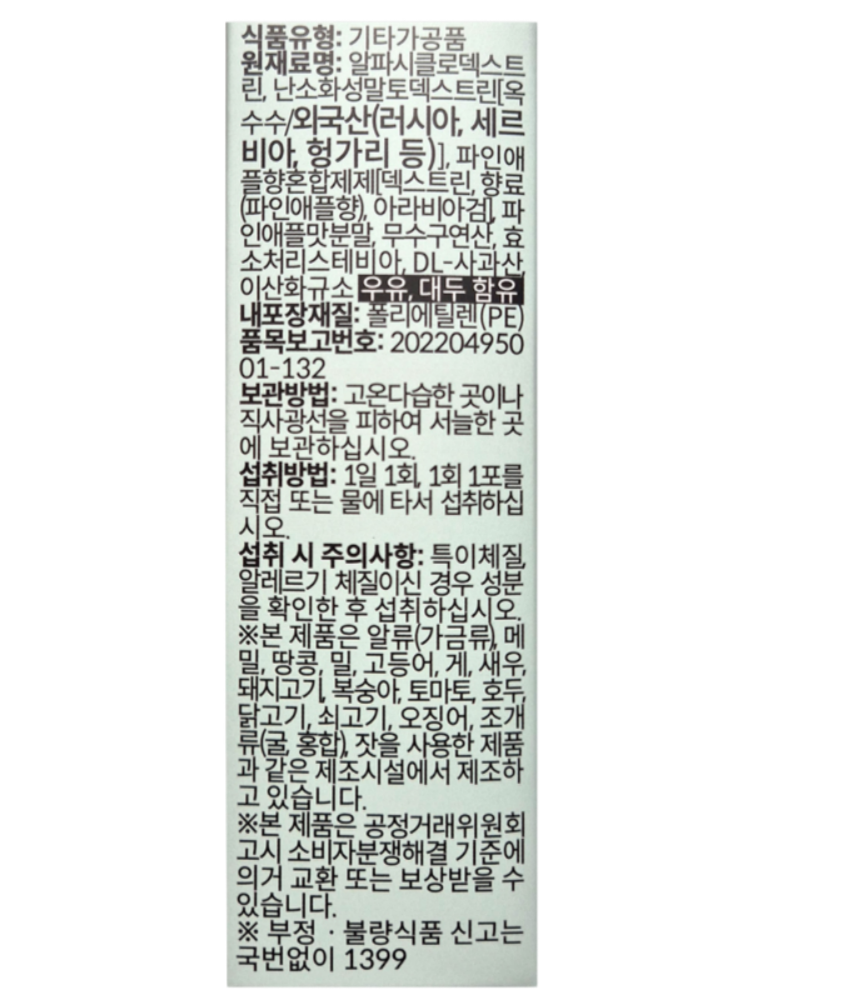 원데이 알파시클로덱스트린 알파CD 파인애플맛 4박스