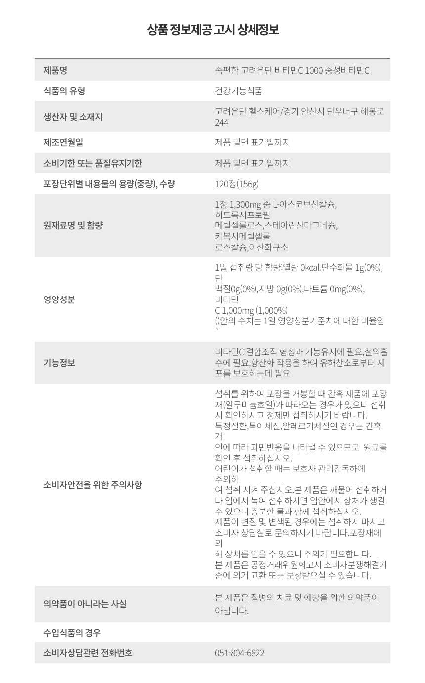 속편한 고려은단 비타민C 1000 중성비타민C 120정 X 3개