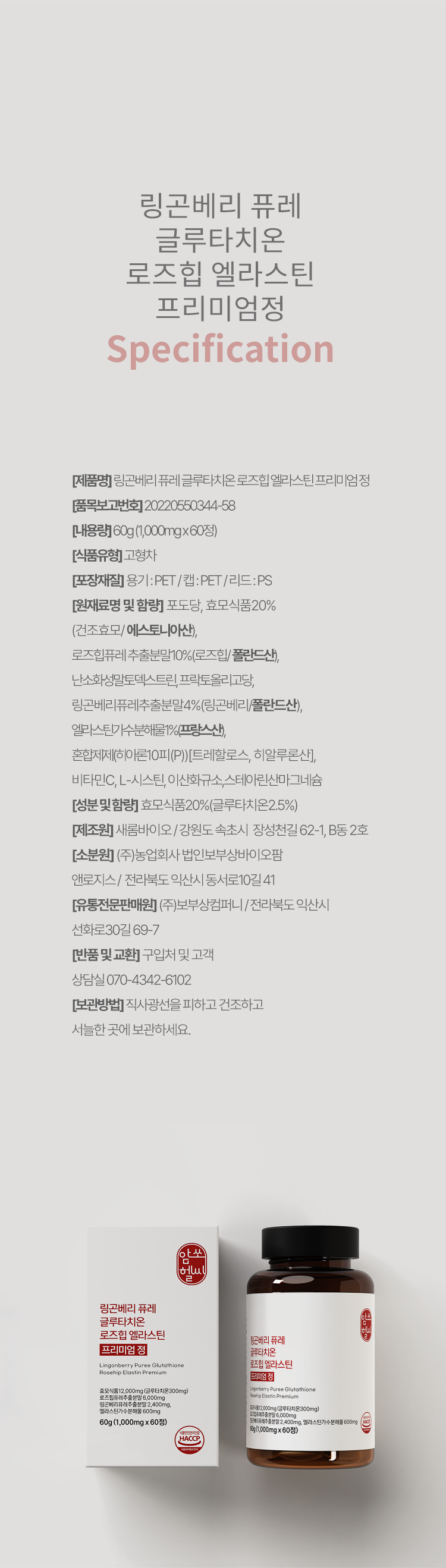 링곤베리 퓨레 글루타치온 로즈힙 엘라스틴 프리미엄 정