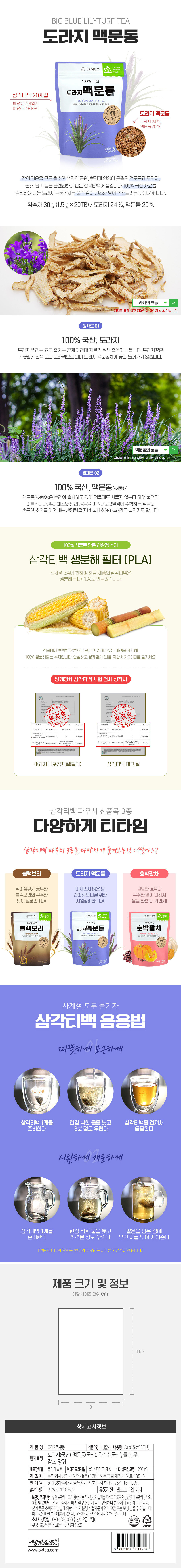 쌍계명차 TEAISM(홈) 도라지 맥문동차 파우치 20티백