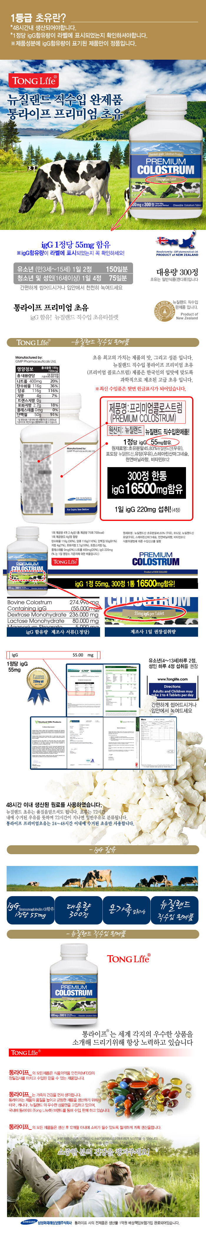 [통라이프]뉴질랜드산 프리미엄초유 igG (600mg x 300정) 1개