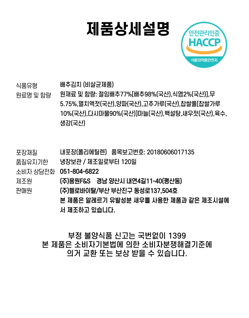 싱싱한 국내산 배추와 3년 숙성된 멸치액젓,