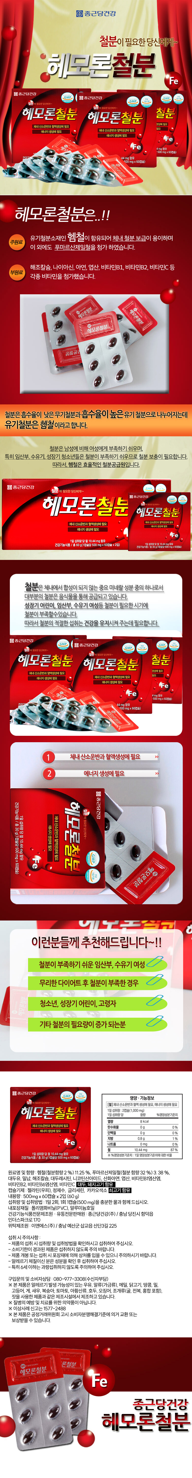 종근당 헤모론철분 500mg×120캡슐× 2개(4개월분)