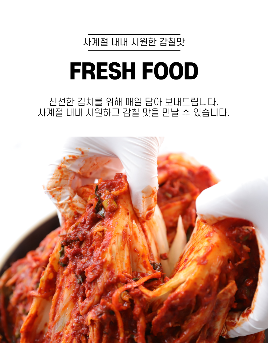 스트레스 확 풀리는 화끈한 맛😆맛있게 매워서 자꾸만 손이 가는 중독적인 그 맛!맵지만 자꾸 생각나는 마성의 매력❣️맛있게 매운 양념 속 꽉 찬 배추!!️아삭함 가득 신선하고 맛있는 재료들만 엄선했어요❤️한 번 먹으면 멈출 수 없는 매콤한 유혹☄️