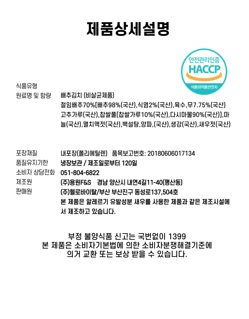 20년 전통 비법 레시피 깊은 맛 국산 배추김치 3KG
