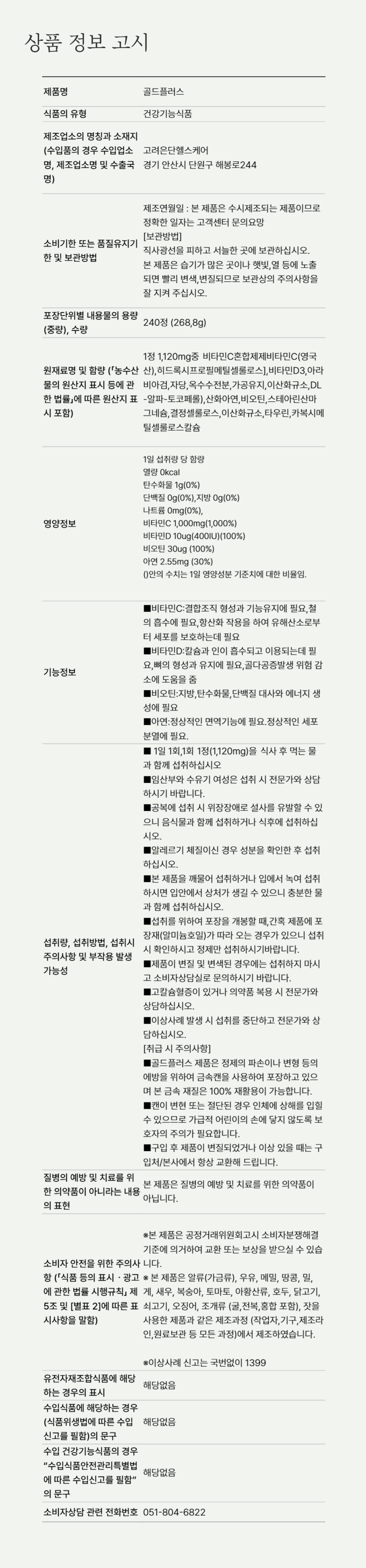 ✅고려은단 골드플러스 240정×5개