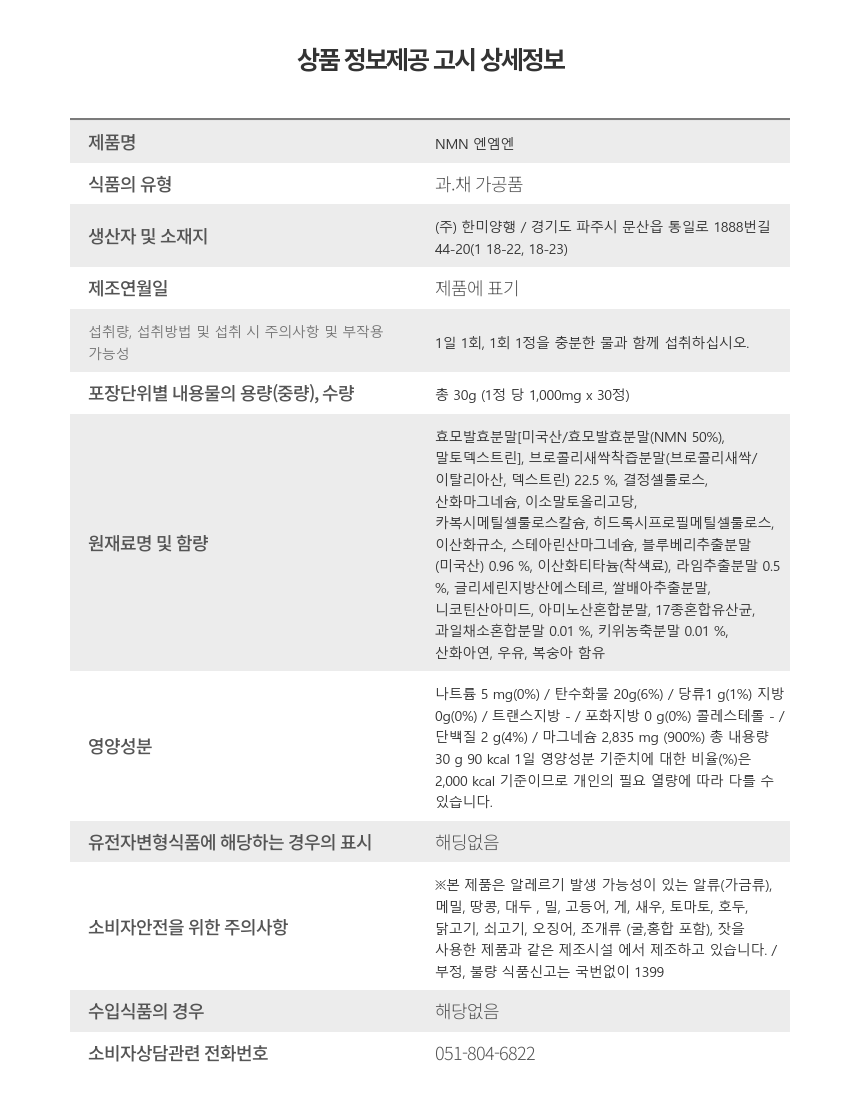 종근당건강 NMN 엔엠엔 1000mg x 30정