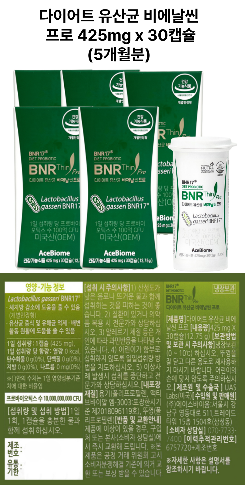 BNR17 다이어트 유산균 비에날씬 프로 425mg 30캡슐 5개