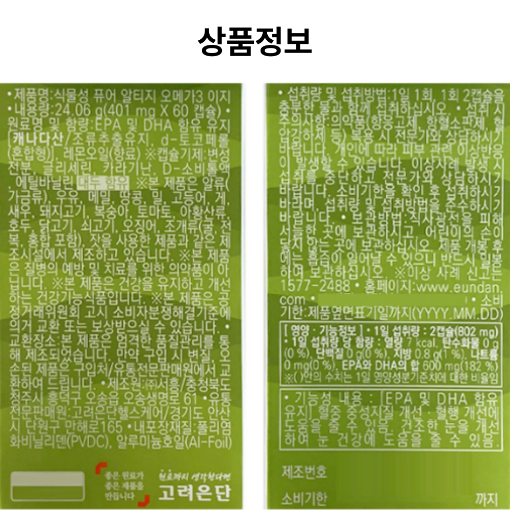 고려은단 식물성 퓨어 알티지 오메가3 이지