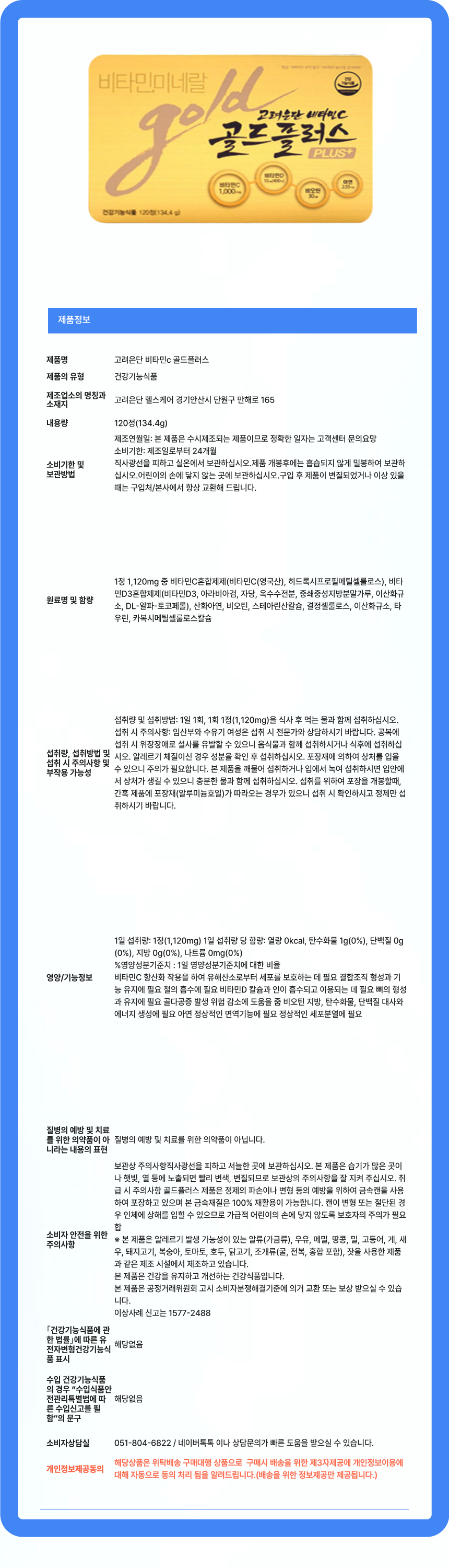 고려은단 골드플러스 120정 X 1개 (4개월분)