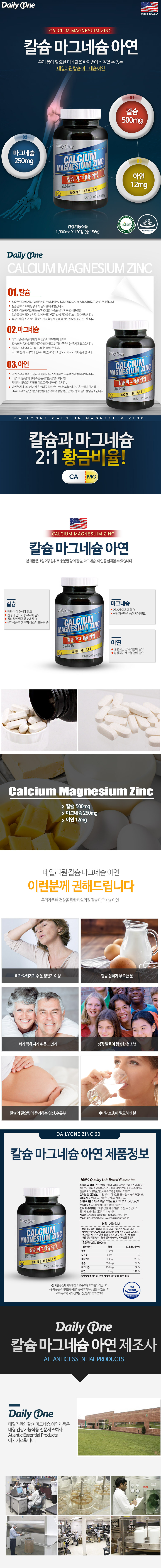[데일리원]칼슘 마그네슘 아연 (1,300mg x 120정)